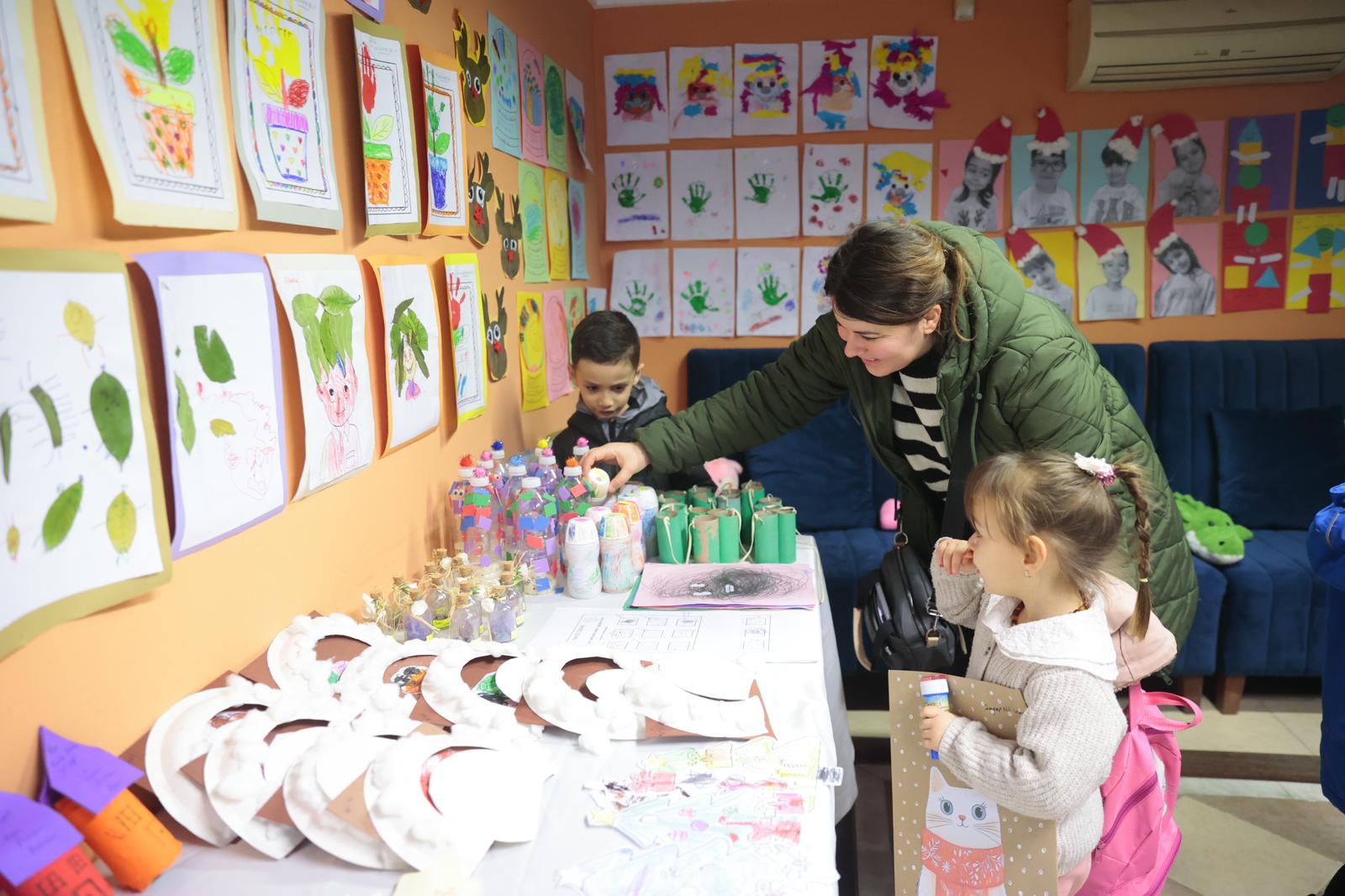 Karnelerini alan çocukların, dönem boyunca yaptığı resim ve etkinlikler de sınıflarında sergilendi.
