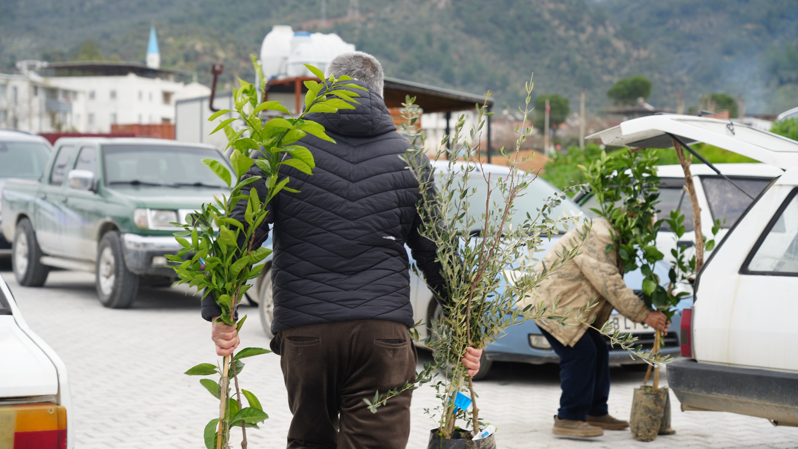 Milas Belediyesi Tarımsal Hizmetler Müdürlüğü personelleri tarafından isimleri okunan üreticiler meyve fidanlarını Başkan Topuz’dan teslim aldı. Fidanları teslim alan üreticiler meyve fidanlarını toprakla buluşturmak üzere tarlalarına doğru yola çıktı.